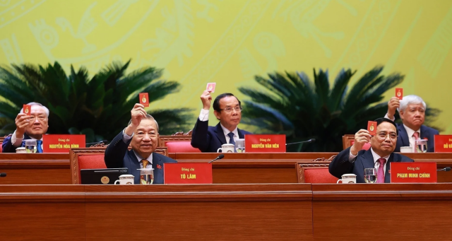 Đại hội biểu quyết thông qua dự thảo điều chỉnh chương trình Đại hội XIV của Đảng. [Ảnh=TTXVN]