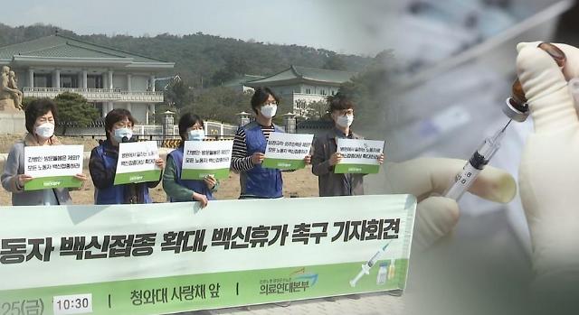 Họp báo kêu gọi mở rộng chế độ nghỉ phép sau tiêm chủng. [Ảnh=Yonhap News]