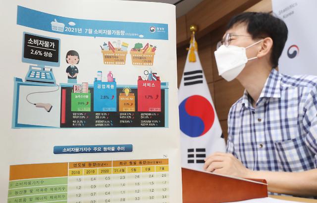 Theo báo cáo “Xu hướng giá tiêu dùng tháng 7 năm 2021” do Cục thống kê quốc gia Hàn Quốc công bố ngày 3/8, chỉ số giá tiêu dùng tháng trước đạt 107,61 điểm (so với mức chuẩn 100 điểm năm 2015), tăng 2,6% so với cùng kỳ năm ngoái.