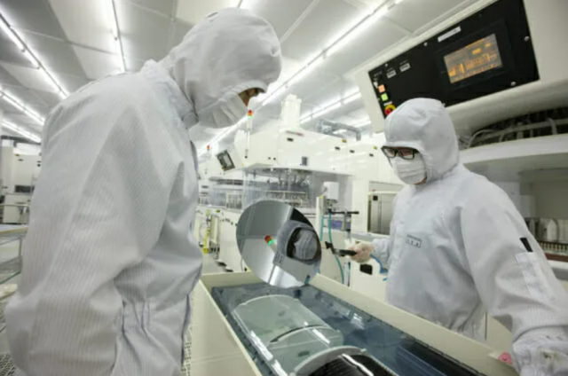 các nhà nghiên cứu của SK Siltron kiểm tra các tấm silicon, một loại vật liệu bán dẫn. [Ảnh=SK Siltron]