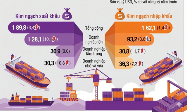 Về quy mô doanh nghiệp, xuất khẩu tăng trưởng đồng đều ở tất cả các nhóm từ tập đoàn lớn (3,4%), doanh nghiệp tầm trung (2,0%) đến doanh nghiệp nhỏ và vừa (7,2%).